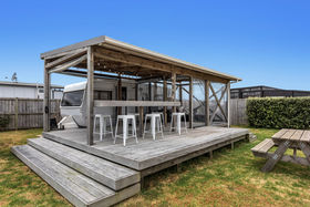 The site also features a port-a-com cabin, furnishing additional guest accommodation, along with three sheds that provide substantial storage capacity. With generous dimensions, the section affords significant flexibility for designing and constructing a residence tailored to your preferences, whether you envision a modern coastal retreat or a traditional Kiwi Bach.